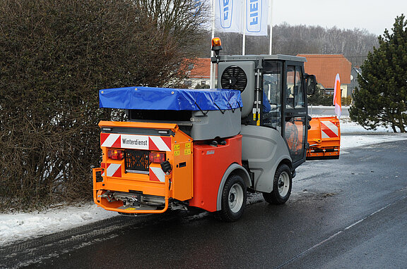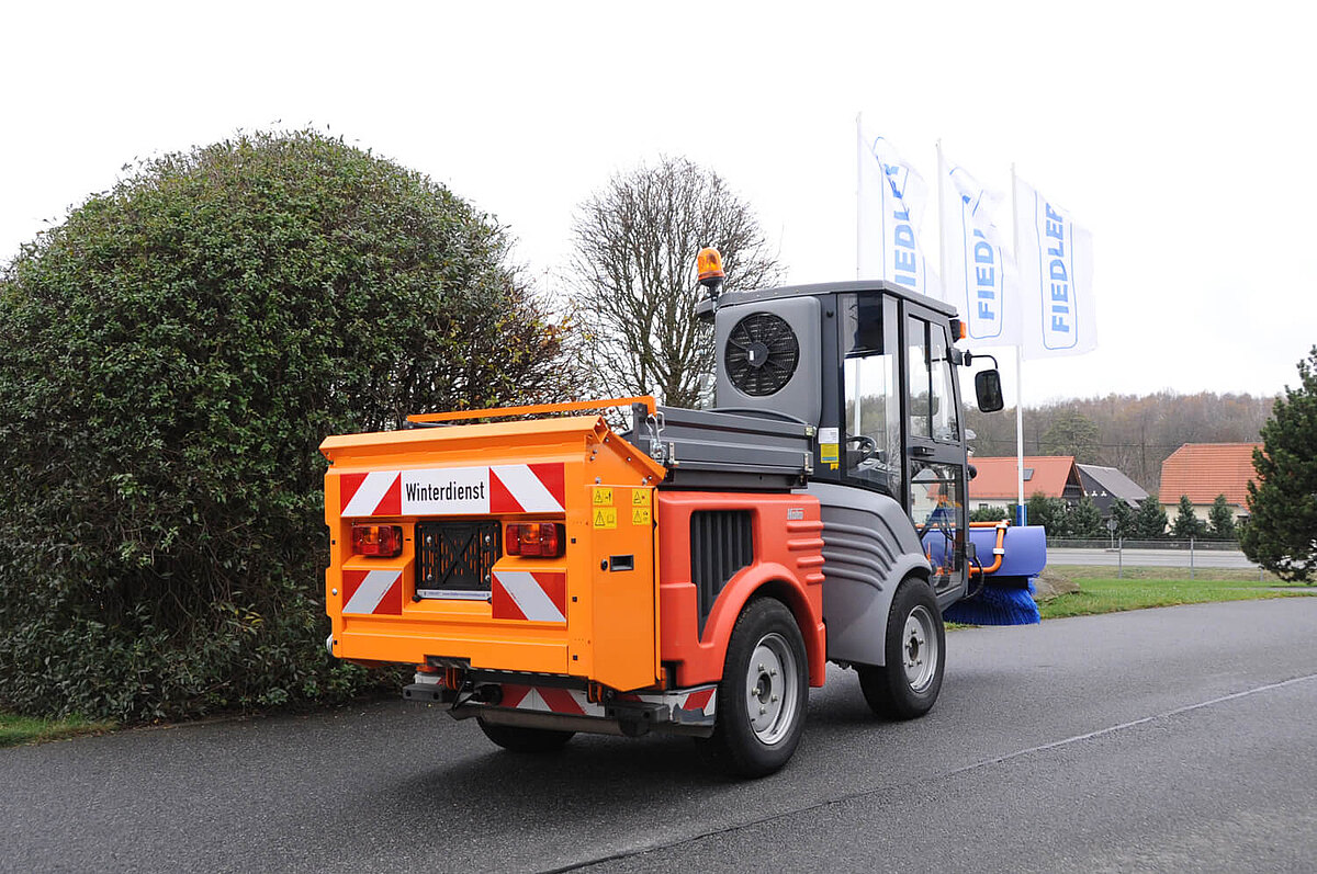 Красная / белая предупредительная разметка на отражающей фольге с надписью «Зимняя уборка» в соответствии с DIN 30710 / StVZO дополнительно: - полностью автоматизированное управление в зависимости скорости - по выбору как комбинированный разбрасыватель